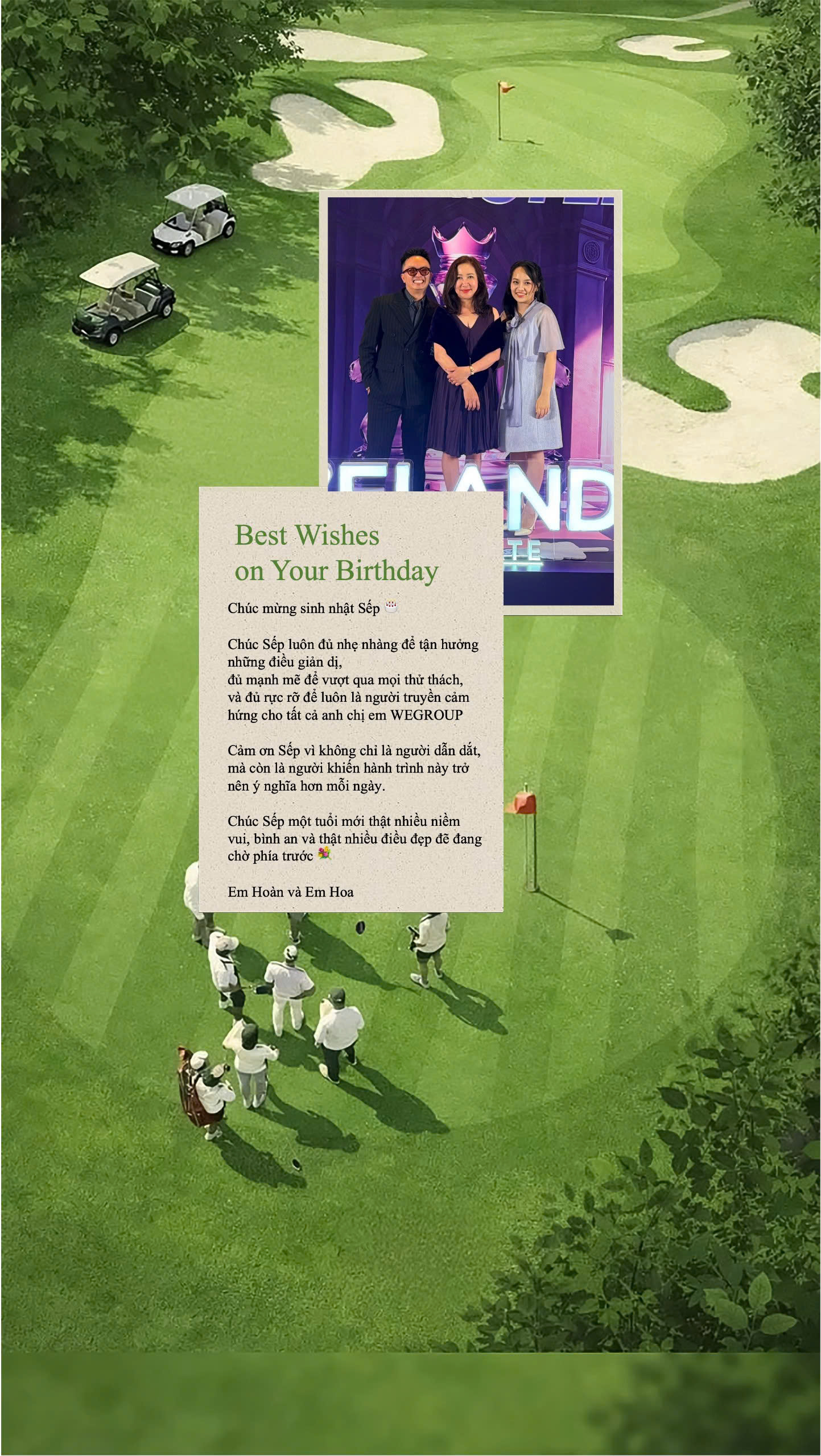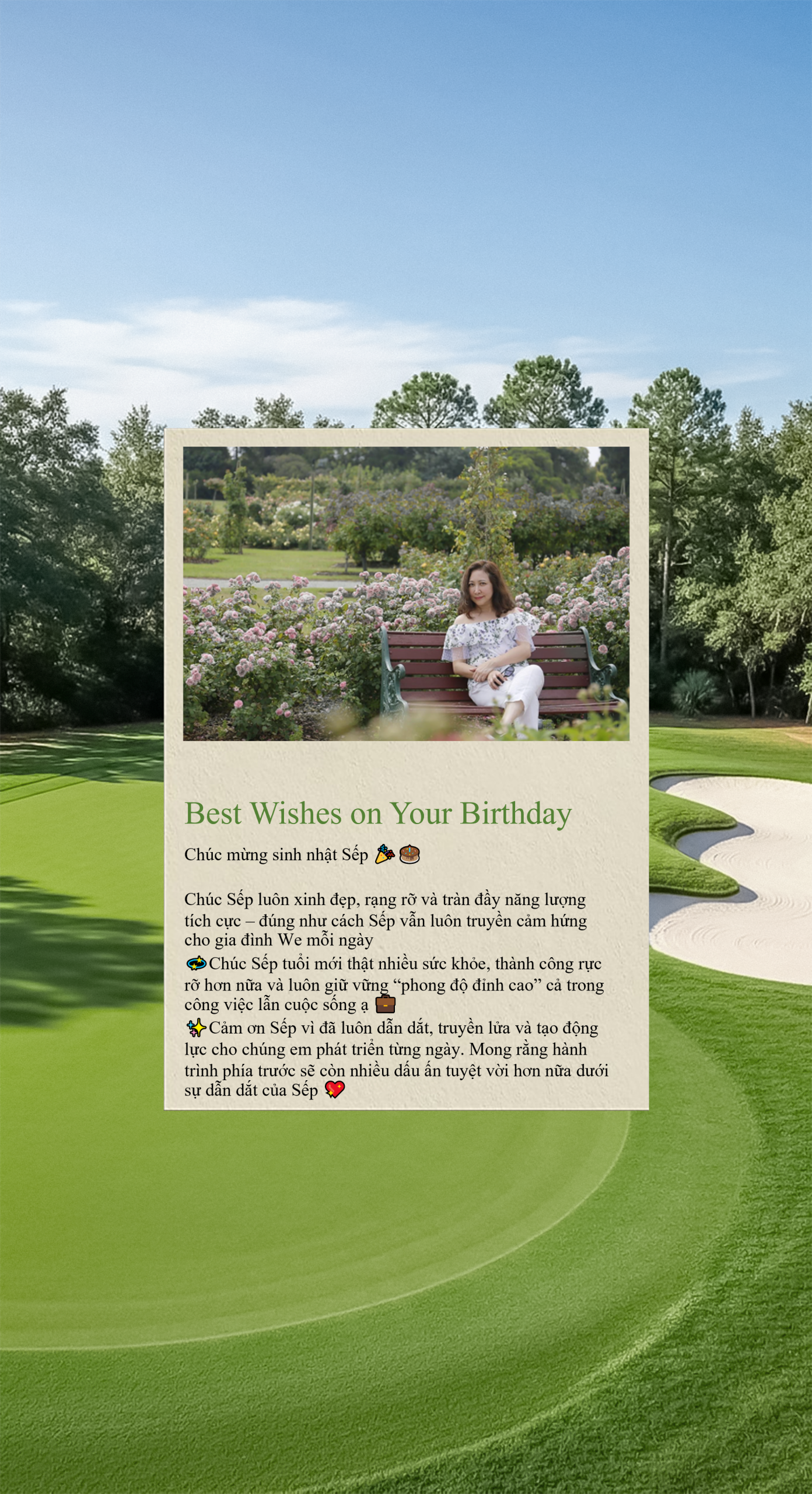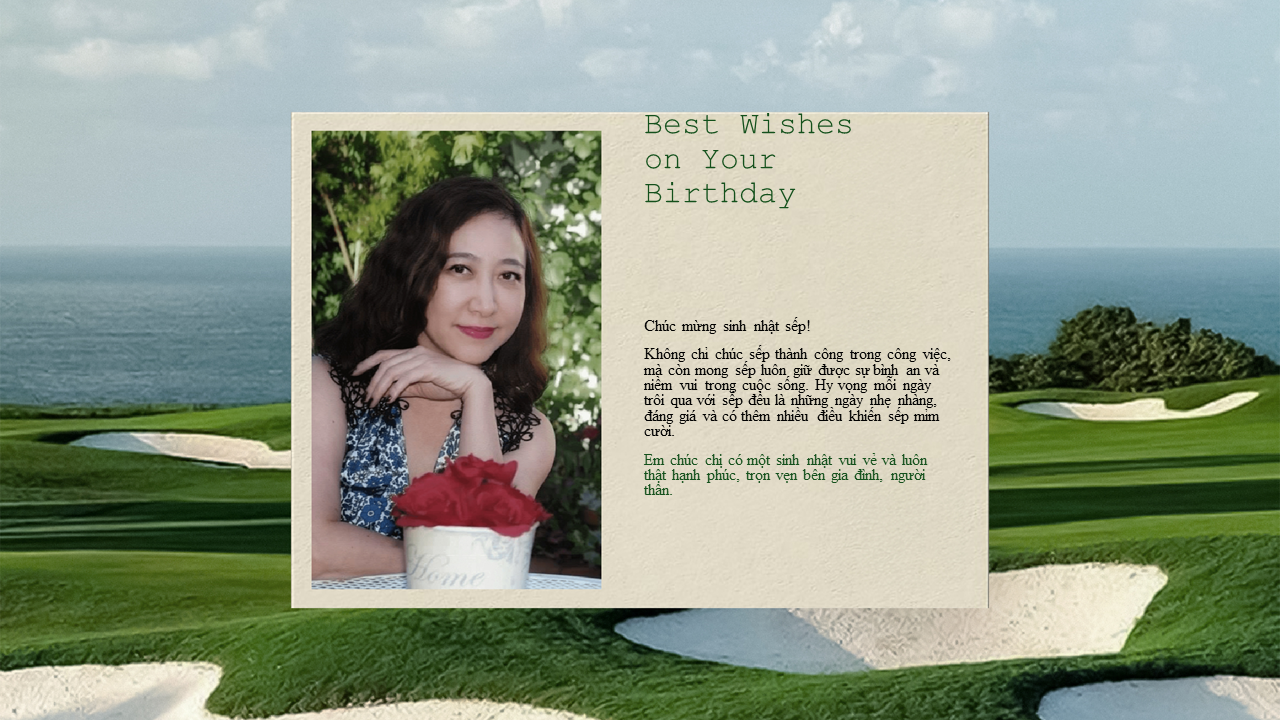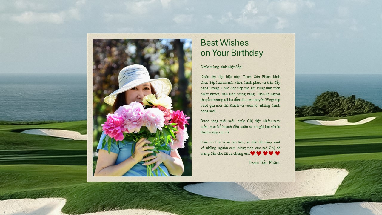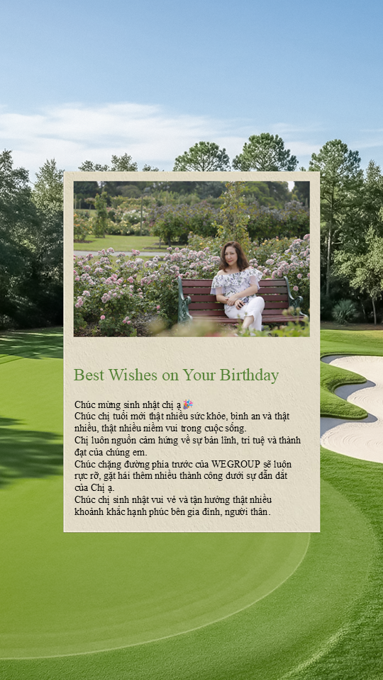 Chúng em kính chúc chị tuổi mới thật nhiều sức khỏe, lúc nào cũng rạng rỡ và tràn đầy năng lượng như khoảnh khắc chị thực hiện cú swing hoàn hảo trên sân golf vậy ^^