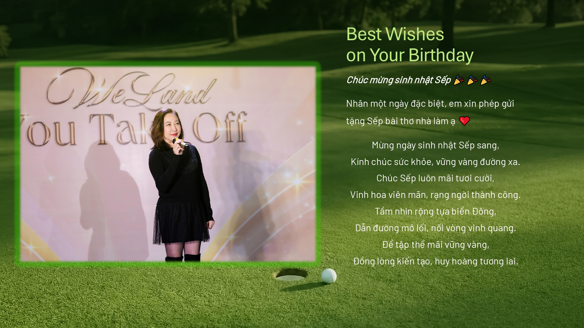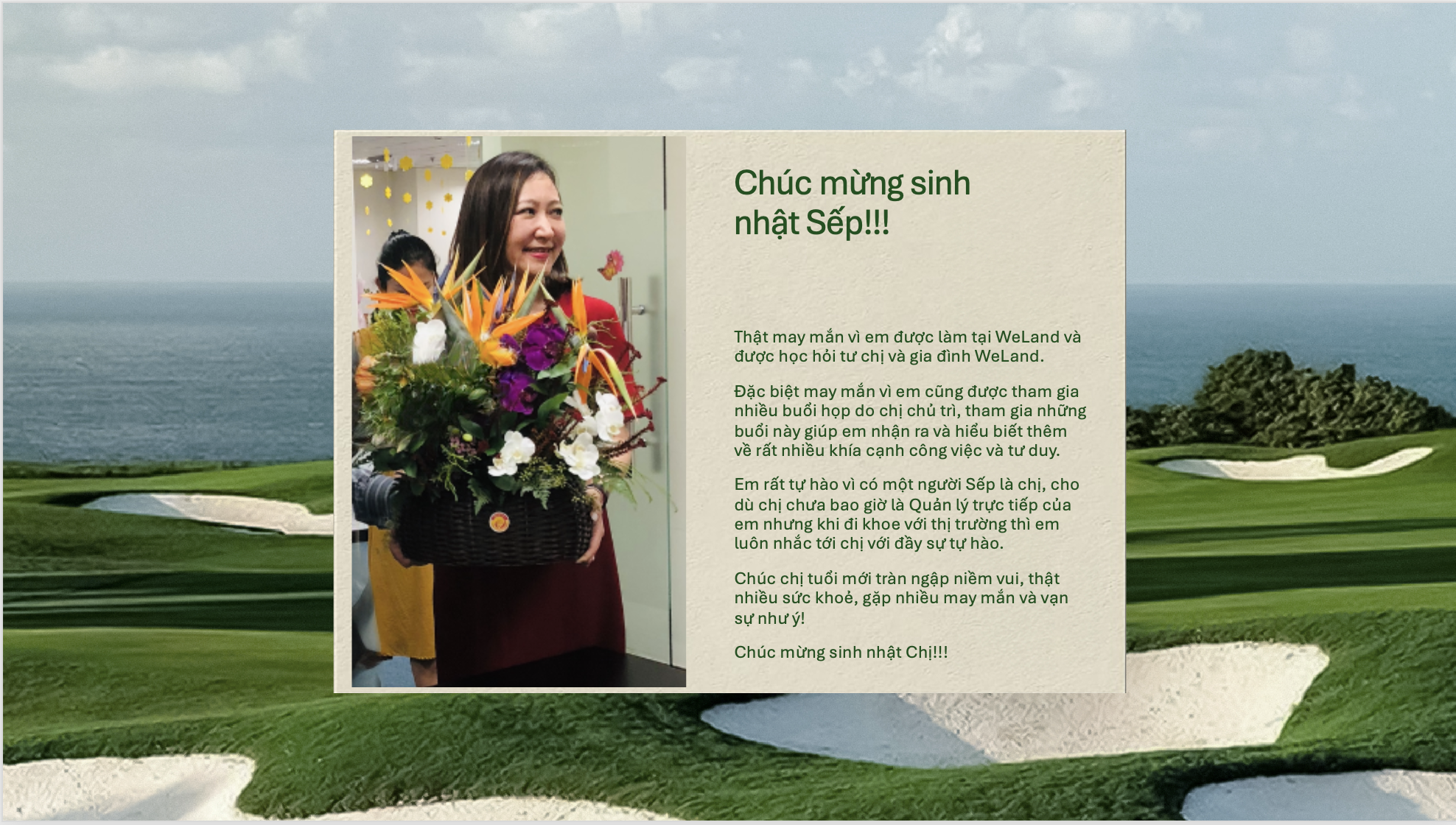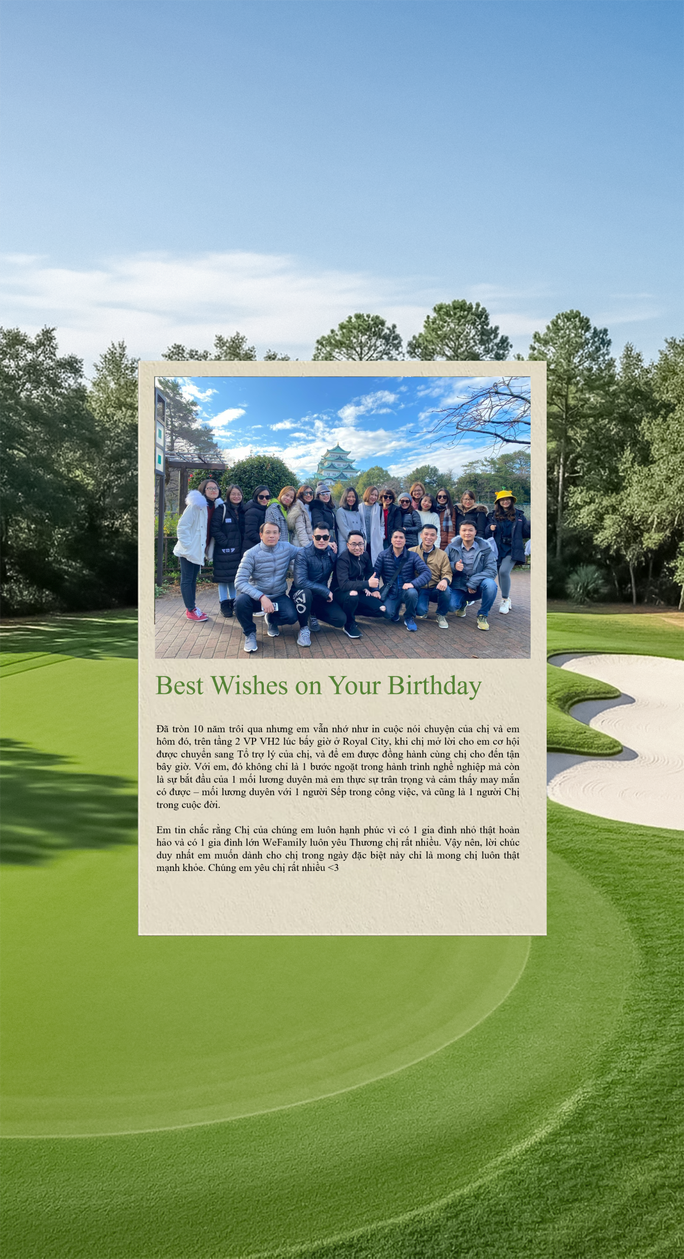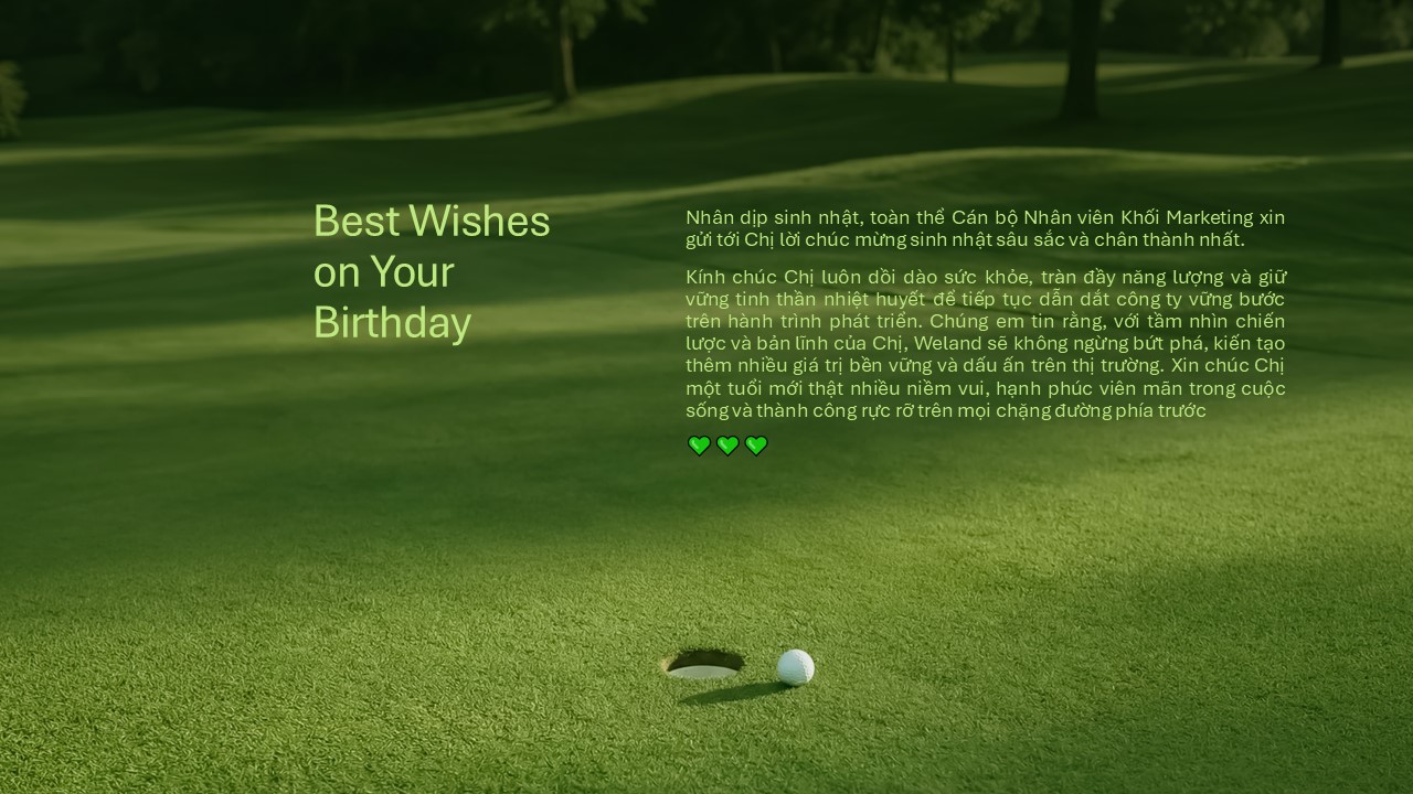 Chúng em kính chúc chị tuổi mới thật nhiều sức khỏe, lúc nào cũng rạng rỡ và tràn đầy năng lượng như khoảnh khắc chị thực hiện cú swing hoàn hảo trên sân golf vậy ^^